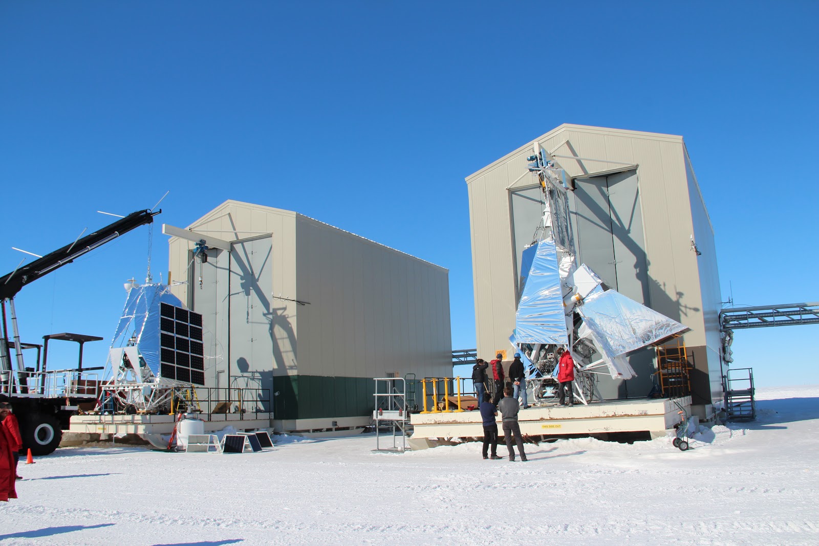 BLAST and EBEX both had testing to do outside, so at one point they were both outside at the same time. We joked that we should move Super-TIGER outside as well just so that we could get a group photo, but we kept our instrument inside all day. The weather was too windy for a pathfinder launch, so they'll try again Monday.